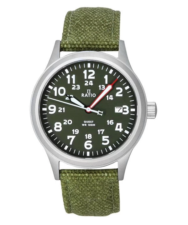 Ratio Quest Men’s Field Watch Sapphire Canvas Strap Khaki Green Dial Quartz RTQ029 100M Lewis And Clark Edition