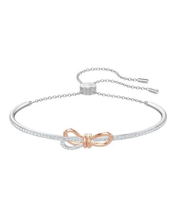 Swarovski Lifelong Bow Rhodium Plated Oval Shaped Bangle With White Crystal 5447079 For Women…..